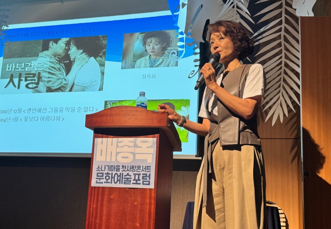 [뉴스노크=김인호 기자] 배종옥 배우가 지난 17일 오후 2시, 양평군 황순원문학촌 소나기마을에서 열린 ‘첫사랑콘서트 문화예술포럼’에서 40년 연기 생활을 되돌아보며 그 추억과 감동을 이야기했다.