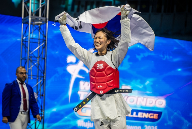 [뉴스노크=김인호 기자] 인천 동구 여자태권도팀 이예지 선수(-49kg)가 지난달 28일 전라북도 무주서 개최된 2025 세계태권도 그랑프리 챌린지에서 대한민국 국가대표로 출전해 금메달을 획득했다.