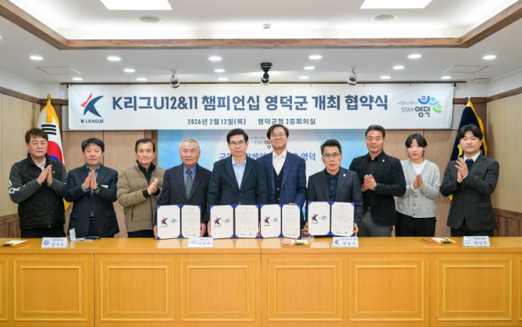[뉴스노크=김인호 기자] 영덕군과 한국프로축구연맹, 영덕군체육회, 영덕군축구협회는 영덕군에서 3년간 개최되는 ‘K리그 유스(U-12&11) 챔피언십’의 성공적인 개최를 위해 지난 12일 영덕군청 제1회의실에서 협약식을 개최했다.