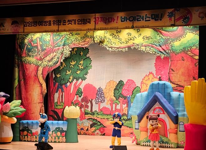 ▲ 2024.10.17.(작년) 감염병 예방 손씻기 인형극 공연 모습(별첨) |