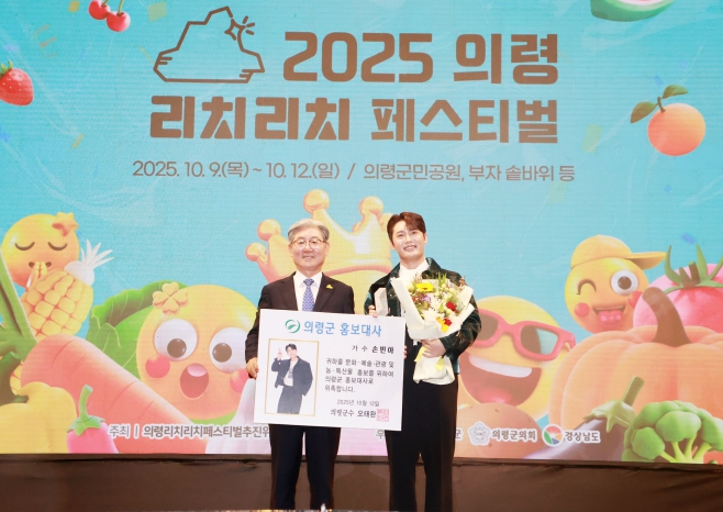 손 씨는 지난 12일 열린 리치리치페스티벌 ‘토요애 화합콘서트’ 무대에서 오태완 의령군수로부터 홍보대사 위촉패를 전달받고, 축하 공연을 펼쳤다. 특히 이날 의령 발전을 위한 고향사랑기부금 500만 원을 기부해 큰 박수를 받았다.