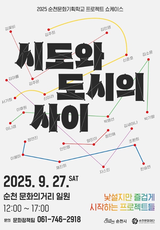[뉴스노크=김인호 기자] (재)순천문화재단은 오는 27일 오후 12시부터 5시까지 문화의 거리 일원에서 2025 순천문화기획학교 프로젝트 쇼케이스 '시도와 도시의 사이'를 개최한다.