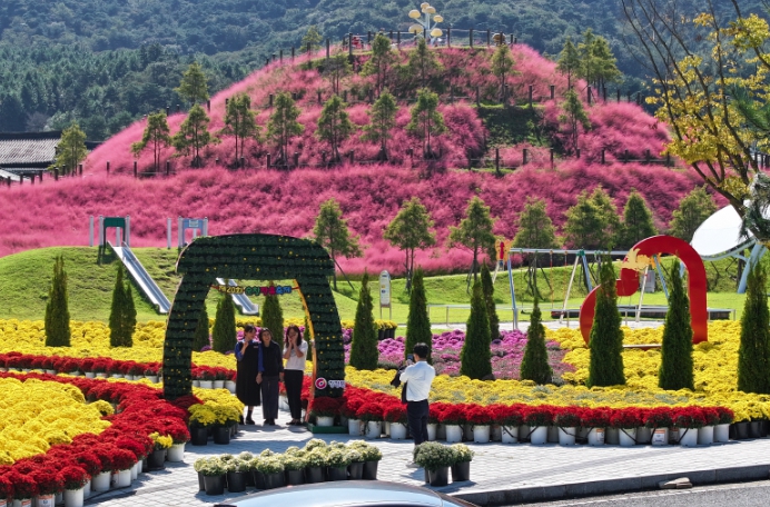 특히, 팡이공원에는 1만여 본의 오색 화분국과 조형국, 대국이 어우러진 국화 정원이 조성됐으며, 이곳에는 하트 모양과 전통 장독대를 형상화한 포토존이 마련해 특별한 추억을 사진에 담을 수 있게 했다.