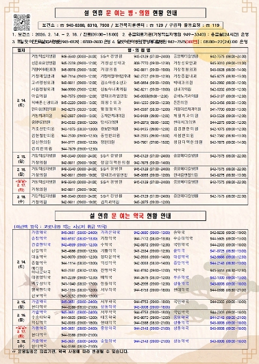 | ▲ 설 연휴 문 여는 병의원 및 약국 현황 안내 |