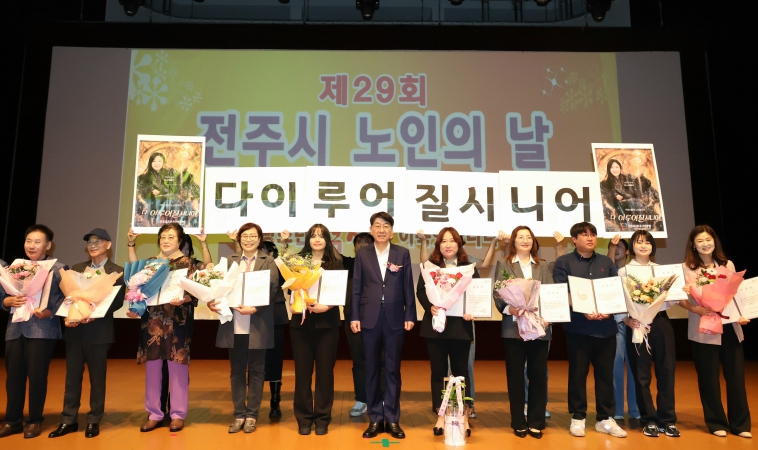전주시와 대한노인회 전주시지회(지회장 홍성언)는 14일 전주학생교육문화관 공연장에서 우범기 전주시장과 최주만 전주시의회 부의장, 김두봉 대한노인회 전북특별자치도연합회장, 표창 수상자 등 1200여 명이 참석한 가운데 ‘제29회 전주시 노인의날 기념식’을 가졌다.