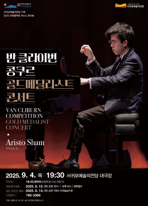 첫 번째 무대는 9월 4일 오후 7시 30분, ‘반클라이번 콩쿠르 골드메달리스트 콘서트’로, 2025년 반클라이번 콩쿠르에서 우승한 피아니스트 아리스토 샴(Aristo Sham)이 출연한다.
