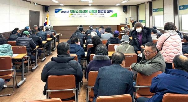 | ▲ 나주시는 기후변화 대응과 지속 가능한 농업 실현을 위해 지난 29일 2026년 상반기 저탄소 농산물 인증제 농업인 교육을 실시했다(사진 제공-나주시) |