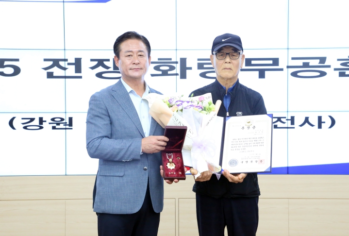 [뉴스노크=김인호 기자] 홍천군은 8월 4일 월례조회에서 6.25전쟁 강원 금화지구 전투에서 공적을 세운 故 박근학 병장의 화랑무공훈장을 유가족인 조카 박순규 씨에게 전달하며, 그의 헌신과 희생을 기렸다.
