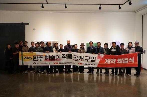 [뉴스노크=김인호 기자] (재)완주문화재단은 10월 31일 복합문화지구 누에아트홀에서 [2025 완주 예술인 작품 공개 구입] 최종 선정 작가들과 작품 구입 계약 체결식을 개최했다.