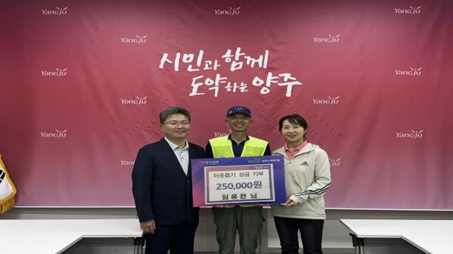 ▲ 양주시 회천1동 가로환경정비 기동처리반 임용찬 반장, 민생회복지원금 이웃돕기 성금으로 기부 |