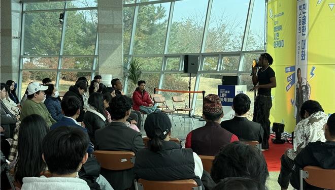 맥스는 ‘맥스와의 진솔한 대화’를 주제로, 다른 외모로 한국에서 살아온 경험, 성장 과정에서 겪은 어려움과 즐거웠던 순간, 비자 연장 등 체류 과정의 고민 등을 시민 및 유학생들과 자연스럽게 소통했다.
