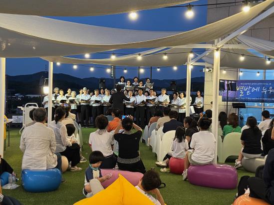행사는 고희전 성악가가 지휘하는 안성 시민동아리 ‘이룸합창단’의 합창 공연을 시작으로 남기윤 셰프의 박두진 핑거푸드 소개 및 시식, 이동식 망원경을 이용한 여름밤 별자리 관측 등 다채로운 프로그램으로 진행됐다.