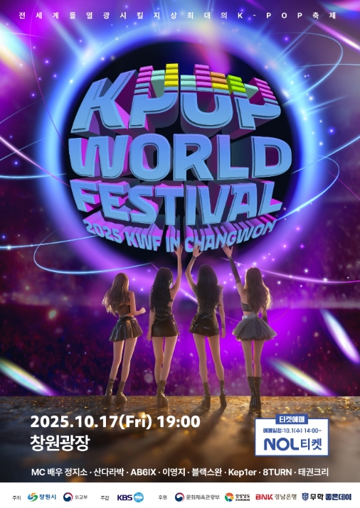 한편, ‘2025 창원 K-POP 월드페스티벌’ 티켓 예매는 10월 1일 오후 2시부터 NOL 인터파크에서 가능하다. 공연(예매수수료 2,000원 발생)은 무료이다.