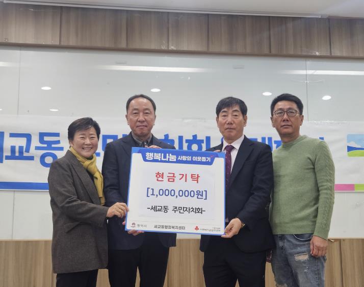 정규현 세교동 주민자치회장은 “설 명절을 앞두고 도움이 필요한 이웃들에게 작은 힘이라도 보태고자 성금을 마련했다”라고 말했다.