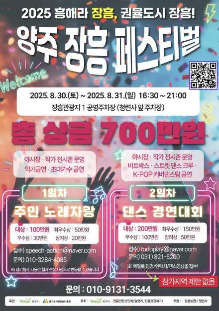 이번 행사는 경기도 ‘희망상권 프로젝트’ 공모사업에 선정된 장흥지역 상권 활성화 사업의 일환으로 양주시와 장흥연합상인회(회장 박해육)가 공동 주관해 추진한다.