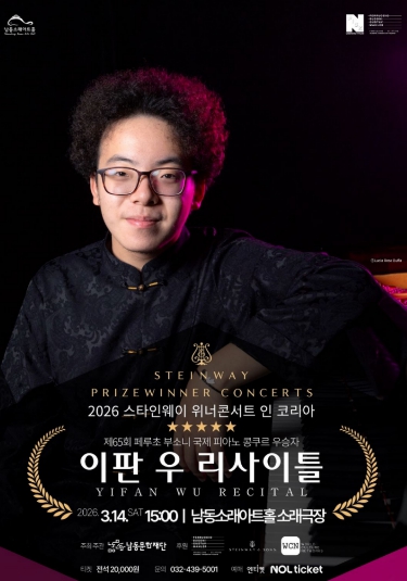[뉴스노크=김인호 기자] 인천시 남동구 남동문화재단은 제65회 페루초 부소니 국제 피아노 콩쿠르 우승자인 이판 우(YIFAN WU)의 피아노 리사이틀 공연을 남동소래아트홀에서 3월 14일 15시에 개최한다고 19일 전했다.