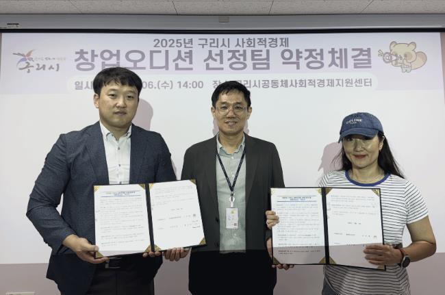[뉴스노크=김인호 기자] 구리시는 지난 6일 구리시 공동체사회적경제지원센터 에서 ‘2025년 사회적경제 창업오디션’ 최종 선정팀과 약정체결식을 개최하고 본격적인 지원에 들어갔다.