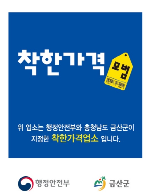 현재 금산군 내 착한가격업소는 △백설식당 △손맛추어탕 △만두마당 △인삼골장터순대 △국수꽃 △상리국수 △모아카페 △기범이네국수 △소미연 등 9곳이 지정돼 운영 중이다.
