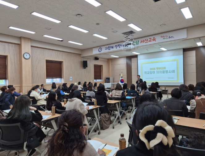 [뉴스노크=김인호 기자] 충청남도서산교육지원청은 12월 10일 어울림실에서 서산 관내 54교 학부모회장과 학부모 70여 명이 참석한 가운데 학부모 교육 참여 사례 나눔 자리를 진행했다.
