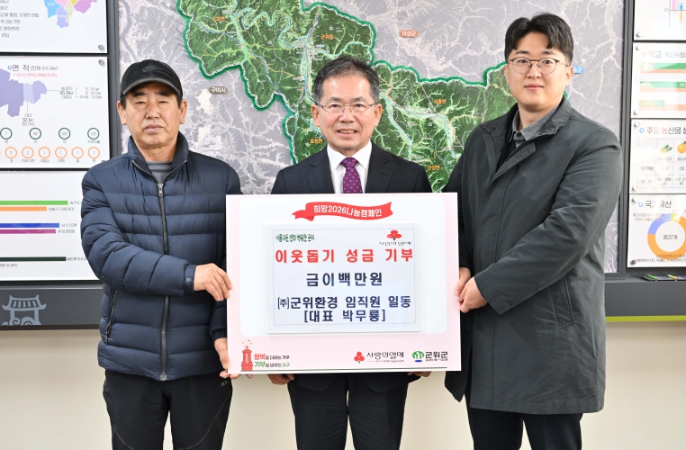김진열 군위군수는 “매년 지역사회 공헌에 앞장서주시는 ㈜군위환경에 항상 감사드린다.”며 “기부해주신 성금이 관내 도움이 필요한 저소득층을 지원하는 데 쓰일 수 있도록 노력하겠다.”고 말했다.
