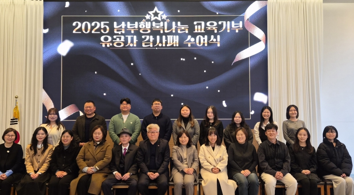 [뉴스노크=김인호 기자] 대구남부교육지원청은 12월 10일 ‘2025 남부행복나눔 교육기부 유공자 감사패 수여식’을 개최하고, 1년간 관내 교육 발전에 이바지한 유공자 24명(개인 22명, 단체 2곳)에게 감사패를 수여했다.