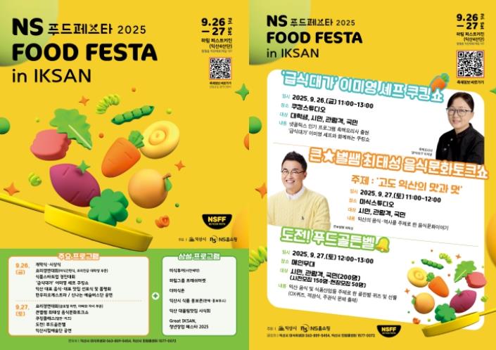 익산시는 오는 26일부터 27일까지 제4일반산업단지 내 하림 퍼스트키친에서 'NS푸드페스타 2025 in 익산'과 '그레이트 익산(Great Iksan) 청년창업 페스타 2025'가 열린다고 25일 밝혔다.