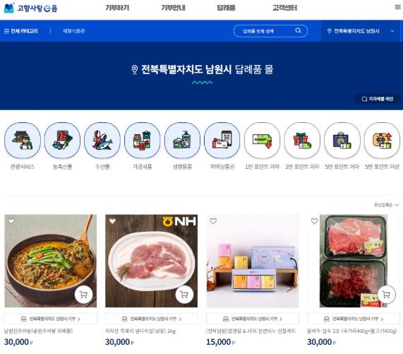 ▲ 남원시 고향사랑기부제 답례품 확대, 총 70종 선보여 |