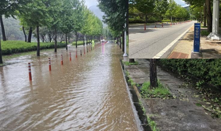 도로 침수 시 막힌 빗물받이를 청소하고, 이물질 및 퇴적물을 제거하여 우수(雨水) 배수가 원활히 이뤄지도록 개선했다.