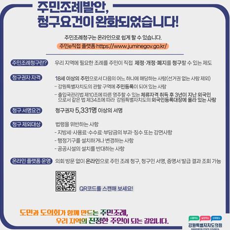 이에 도의회는 제도내용과 완화된 주민조례청구 요건을 적극 홍보하여 도민의 참여를 유도하기로 했다.
