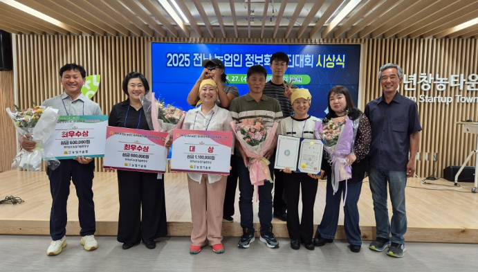 라이브 커머스 분야 대상 수상자인 정미영, 김선종 대표는 전남 대표 자격으로 오는 10월 23일 농촌진흥청 주관 ‘2025년 스마트경영 혁신대회’에 참가해 전국 우수 농가들과 경쟁할 예정이다