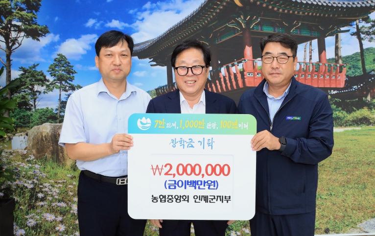 [뉴스노크=김인호 기자] 농협중앙회 인제군지부(지부장 박진호)는 7월 24일 10시 인제군청을 방문해 장학금 2백만원을 기탁했다.