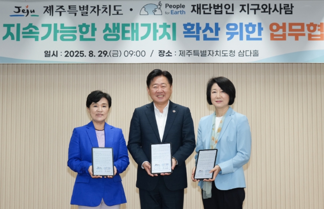 송기원 이사장은 “제주는 한반도에서 가장 다양한 생물종이 살고 있는 신비한 땅이자, 세계적으로 생태적 가치가 매우 높은 곳”이라며 “지속가능한 생태 가치를 확산하고, 전 지구적인 생태문명의 중심으로 나아가려는 제주의 커다란 비전을 위해 지구와사람이 최선을 다해 돕겠다”고 말했다.