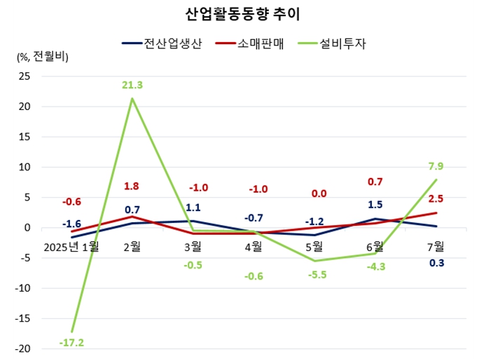 [뉴스노크=김인호 기자] 오늘 통계청이 발표한 7월 산업활동동향에 의하면, 생산·소비·투자 모두 증가하는 ‘트리플 증가’ 현상이 2025년 2월 이후 5개월만에 다시 나타났다. 이는 새정부 들어 경기 회복세가 본격화되고 있음을 보여주는 신호로 평가할 수 있다.