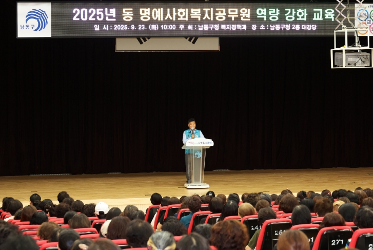 [뉴스노크=김인호 기자] 인천시 남동구는 구청 대강당에서 동 명예사회복지공무원 400명을 대상으로 지역사회 복지안전망 강화를 위해 역량강화 교육을 했다고 25일 전했다.