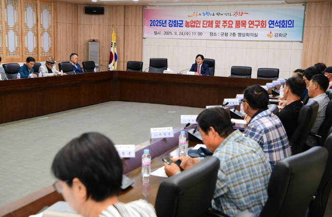 [뉴스노크=김인호 기자] 강화군은 지난 24일 관내 농업인 단체장과 주요 품목 연구회 대표들과 함께 연석회의를 열고, 가을철 수확기를 맞은 농산물의 고품질 유지와 농업 발전 방안을 모색했다.