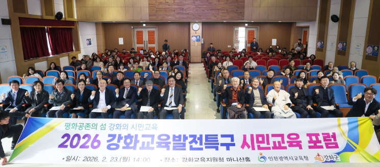 [뉴스노크=김인호 기자] 인천광역시교육청은 지난 23일 강화교육지원청 마니산홀에서 ‘2026 강화교육발전특구 시민교육 포럼’을 개최했다.