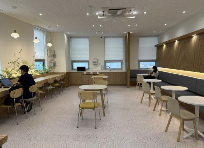 휴게공간은 협소하고 단조로운 구조로 시민들이 이용에 불편했던 점을 보완하고, 다양한 이용자들의 수요를 반영해 △붙박이 소파 설치 △바테이블 및 개별 좌석 설치 △조명시설 교체 △출입문 교체 등 새로운 공간으로 탈바꿈했다.