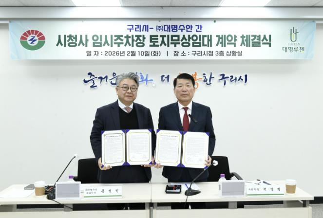 이번 계약은 시청사와 아트홀센터를 이용하는 주민들의 주차 불편을 해소하기 위해 시청사 인근에 임시주차장을 조성하고자 마련됐으며, 이에 따라 구리시는 ㈜대명수안이 소유한 약 7,310㎡ 규모의 토지를 무상으로 임대받아 임시주차장으로 조성·운영하게 된다.