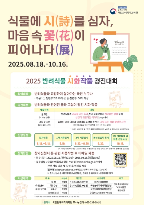 ▲ 2025 반려식물 시화 작품 경진대회 포스터 |