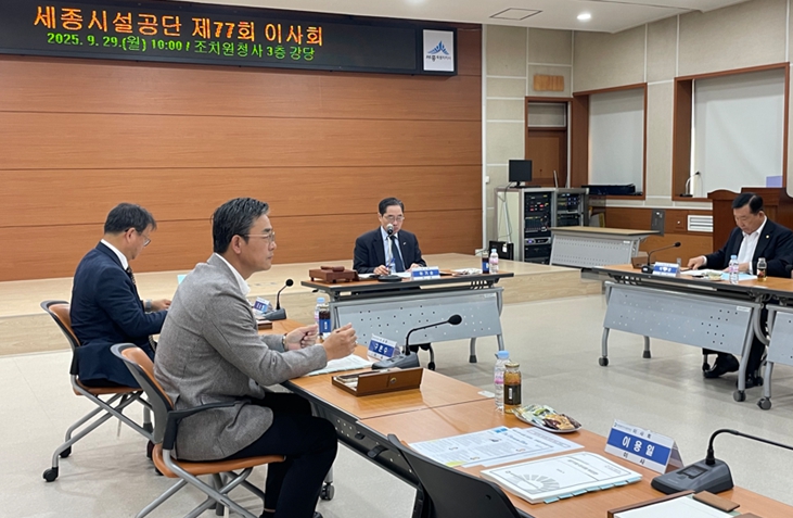 [뉴스노크=김인호 기자] 세종특별자치시시설관리공단의 주요 정책 의사결정기구인 이사회가 9월 29일 조치원청사 강당에서 제77회 이사회를 열고 2025년 상반기 경영혁신 성과를 공유하고 현안사업 추진 현황을 점검하는 한편 인사‧조직 관련 제도 개정안을 심의‧의결하는 자리로 마련됐다.