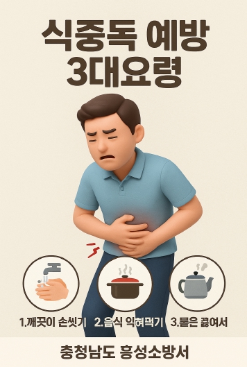 홍성소방서는 식중독 예방을 위해 △비누로 30초 이상 손을 깨끗이 씻기 △음식은 반드시 충분히 익혀 먹기 △끓인 물을 마시기 등 ‘예방 3대 요령’을 생활 속에서 반드시 실천할 것을 당부했다. 또한 식재료는 구입 즉시 냉장·냉동 보관하고, 조리 도구는 사용 후 철저히 세척·소독하는 등 위생 관리에도 각별한 주의가 필요하다.