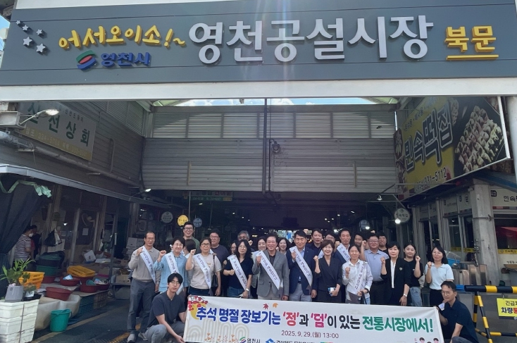 영천시에서는 조명화 문화관광복지국장과 문화예술과 직원 12명이 참여했고, 경상북도 문화유산과와 경북문화재단 문화유산원에서도 21명이 동참해 온누리상품권으로 제수용품과 지역 농산물을 직접 구입하며 시장 활성화에 힘을 보탰다.