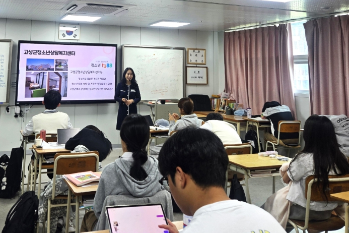 둘재, 생명존중 및 자살예방 교육도 진행됐다. Wee센터와 청소년상담복지센터 상담사들이 고성고등학교 1학년 전교생을 대상으로 반별 교육을 실시해, 자살·자해 행동의 위험성을 알리고 건강한 대처 방법을 안내했다.
