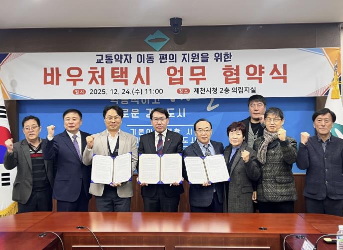 [뉴스노크=김인호 기자] 제천시는 지난 24일 교통약자의 이동권 보장과 이동 편의 증진을 위해 청풍호콜센터, ㈜티머니 모빌리티와 바우처택시 업무협약을 체결했다.