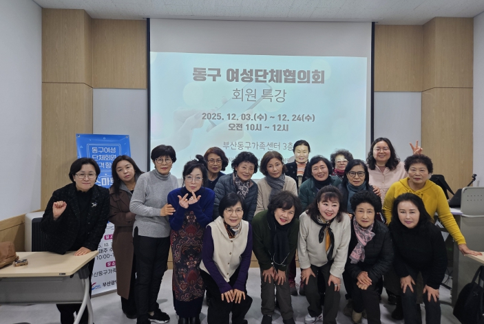 [뉴스노크=김인호 기자] 부산광역시 동구는 여성과 가족이 함께 행복한 성평등 도시 동구 조성을 위한 노력의 일환으로, 동구여성단체 회원들을 대상으로 ‘2025년 품격향상 스마트 리더십 교육’을 11월 5일부터 12월 24일까지 진행했다.