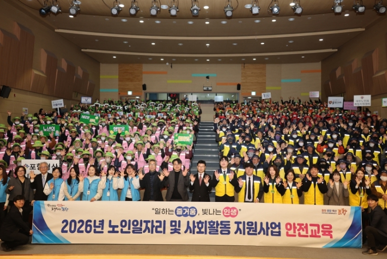 [뉴스노크=김인호 기자] 포항시는 6일 평생학습원 덕업관에서 노인일자리 수행기관 소속 참여자 400여 명과 수행기관장들이 참석한 가운데 ‘2026년 노인일자리 및 사회활동 지원사업 참여자 안전교육’을 개최했다.