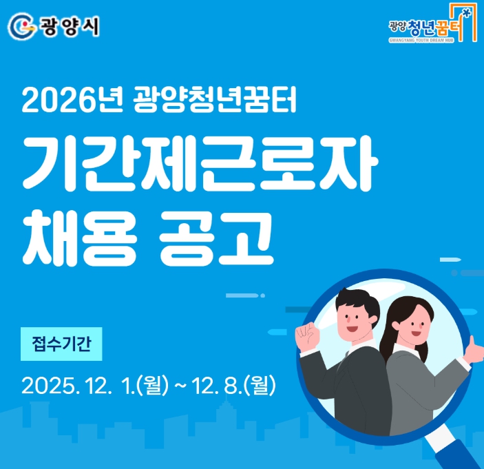 [뉴스노크=김인호 기자] 광양시는 2026년 한 해 동안 광양청년꿈터 운영을 함께할 기간제근로자 4명을 모집한다고 1일 밝혔다.