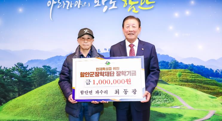 [뉴스노크=김인호 기자] 함안군 함안면 파수리에 거주하는 최동광 씨가 지난 25일 함안군청을 방문해 지역 인재 육성을 위해 장학기금 100만 원을 함안군장학재단에 기탁했다.