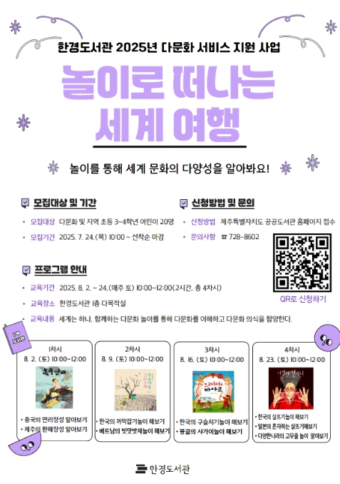 김봉석 탐라도서관장은 “놀이는 어린이들에게 가장 자연스러운 배움의 방식”이라며, “이번 다문화 프로그램을 통해 아이들이 서로 다른 문화를 존중하고 이해하는 태도를 키우는 계기가 되길 기대한다”고 말했다.