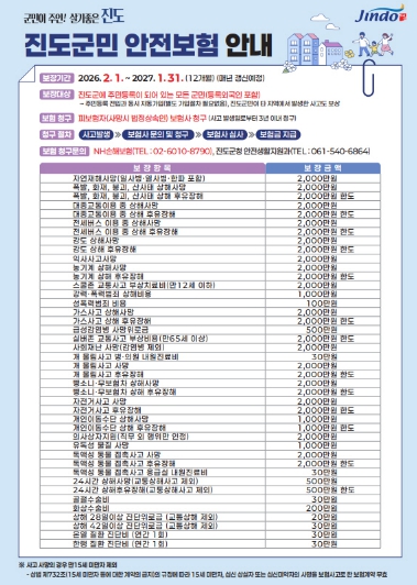 | ▲ 진도군, 2026년 군민안전보험 가입… 보장 항목 확대 |